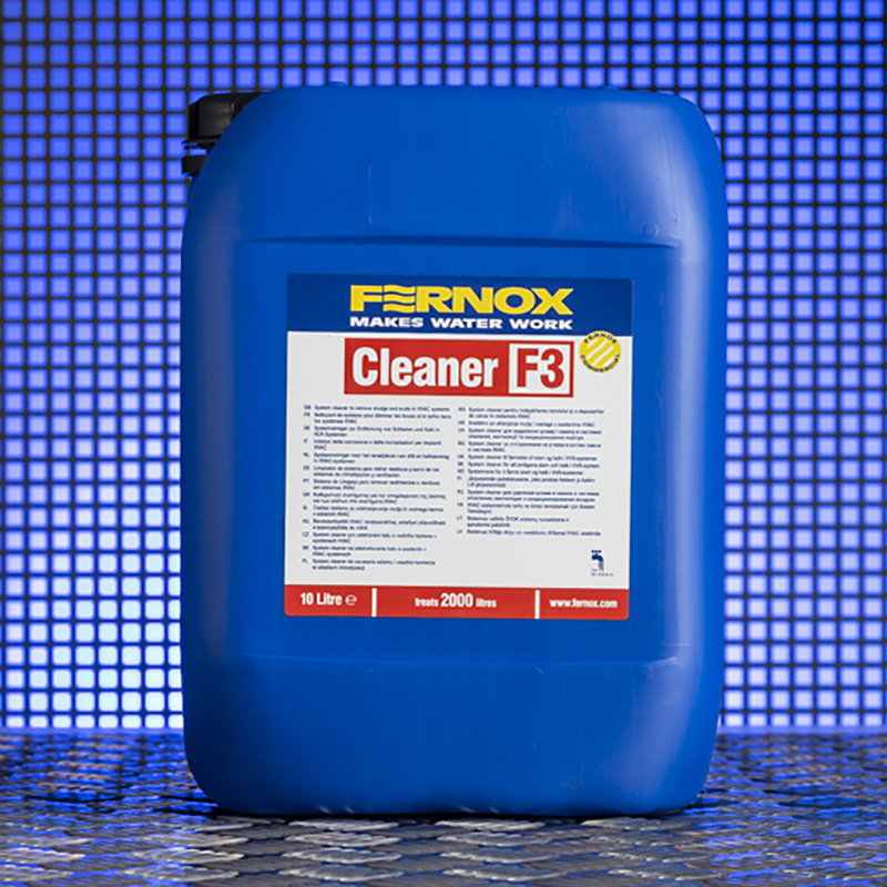 Fernox Cleaner F3 est fourni en tambours de 10 litres. Fernox Cleaner F3 est classé comme non dangereux, mais comme avec tous les produits chimiques : Tenir hors de la portée des enfants. Ne pas mélanger avec d’autres produits chimiques. En cas de contact avec les yeux ou la peau, rincer abondamment à l’eau immédiatement.