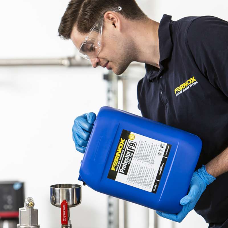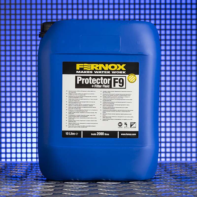 Fernox Protector+ Filter Fluid F9 10L est fourni en récipients de 10 litres.