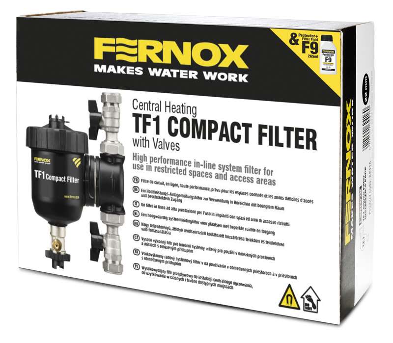 Filtre de système en ligne magnétique haute performance, le TF1 Compact Filter est idéal pour les espaces petits et restreints. Ce filtre en plastique composite facile à installer peut être monté sur des tuyauteries verticales et horizontales dans plusieurs orientations. Sa conception permet de capturer à la fois les débris magnétiques et non magnétiques grâce à l’action hydrocyclonique et à des ensembles magnétiques spécialement conçus pour collecter et contenir les débris dans le filtre avant leur retrait en toute sécurité. Nettoyage rapide et propre via la valve de vidange en moins de 2 minutes – sans besoin de démonter l’unité. Fournit avec un inhibiteur amélioré, Protector+ Filter Fluid F9 265 ml, qui inclut un dispersant pour maximiser l’efficacité du filtre dans la collecte des débris. Le rôle complémentaire du produit chimique et du filtre assure la protection ultime de la chaudière et du système.