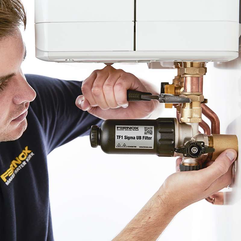 Le TF1 Sigma UB Filter peut être installé sous une chaudière ou dans des endroits étroits et restreints. Idéalement, le filtre doit être monté sur le retour de la chaudière et doit être installé horizontalement.
